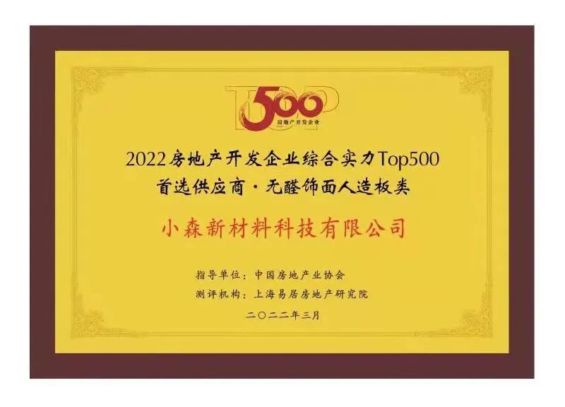 三棵树的亮点不只它在涂料板块上品牌首选率名列前茅,其小森板首次获得“2022房地产开发企业综合实力TOP500无醛饰面人造板类首选供应商”荣誉称号,在各个领域全面开花,集成化发展势头大好。