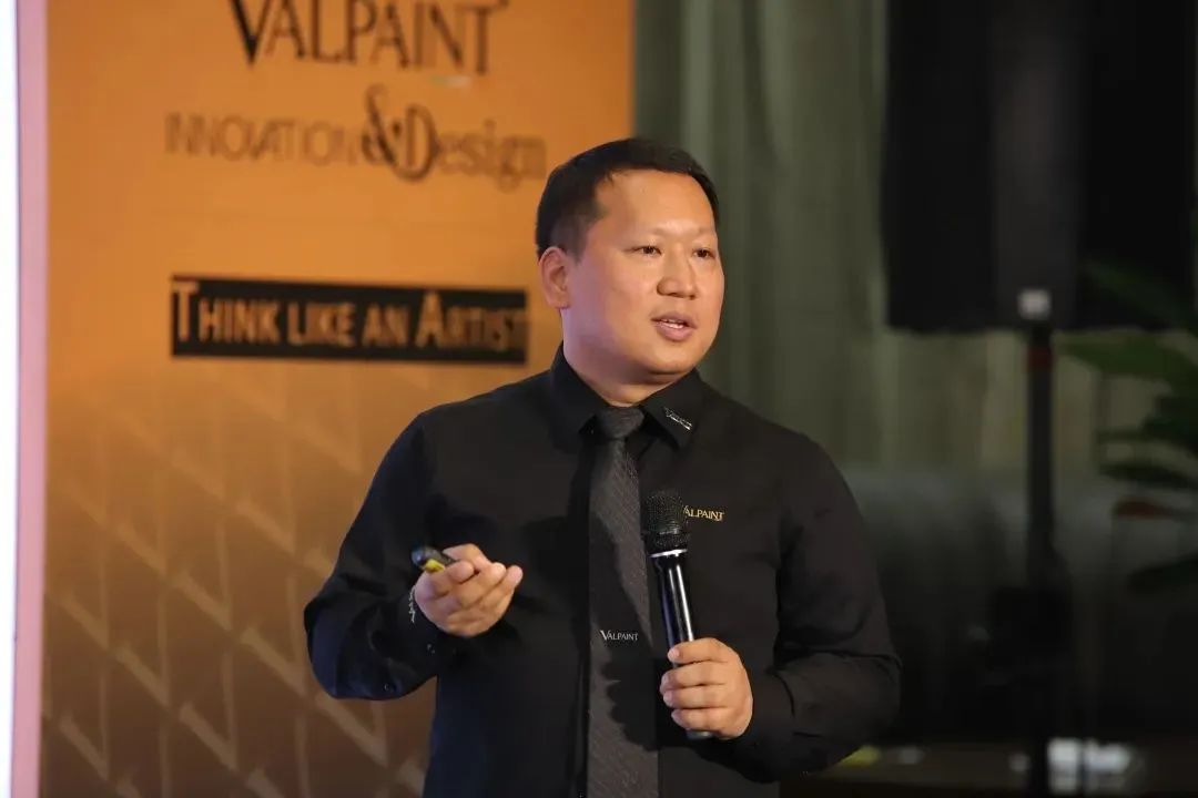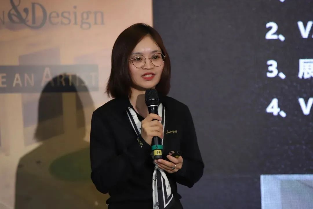 与此同时,VALPAINT 中国区培训导师杨雨虹、VALPAINT中国区副总裁陈德华、VALPAINT中国区副总裁李孝基、VALPAINT中国区财务总监刘志亮等负责人分别从终端店面标准化销售管理体系、市场部物料应用推广、工程部产品创新、财务部财税管理等方面为大家作了主题发言。