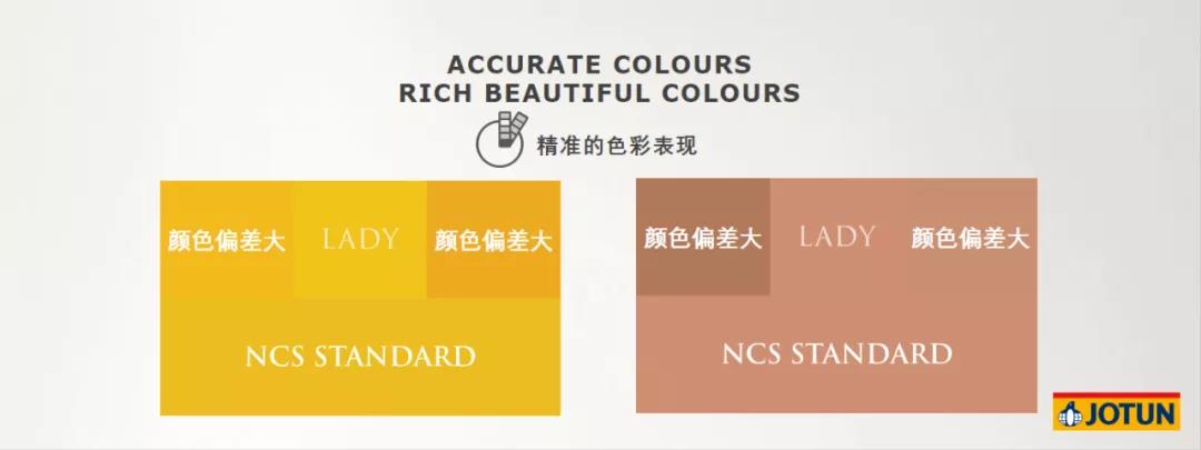 “佐敦LADY”系列是专为女性打造的高端涂料产品,总共可调28万种颜色,并且拥有全球先进的第五代全自动调色系统。主要从女性三个美好品质——美丽善良、刚柔并济、坚韧不拔展现女性魅力。从色卡到实际上墙效果,让色彩所见即所得。