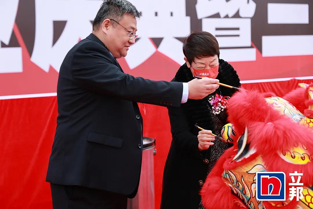 立邦投资有限公司副董事长、立邦中国供应链规划发展总部高级副总裁邢荣华(左)与中国涂料工业协会会长孙莲英为醒狮点睛