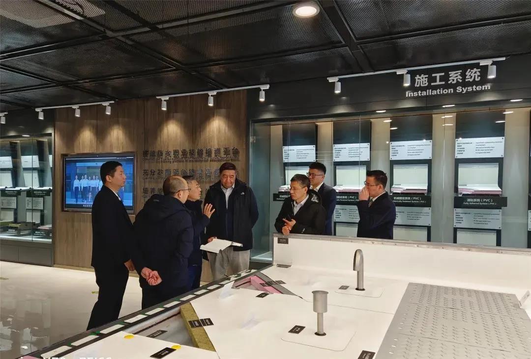 凯伦股份董事长钱林弟、总裁李忠人、凯伦高分子新材料科技有限公司总经理刘吉明、单层屋面应用中心总经理王亚洲等热情接待了朱冬青一行,依次参观介绍了1-3号生产区、光伏展厅、融合光伏屋顶、产业园展厅、产业园二期项目现场、先进技术研究院、防水工技能培训中心。