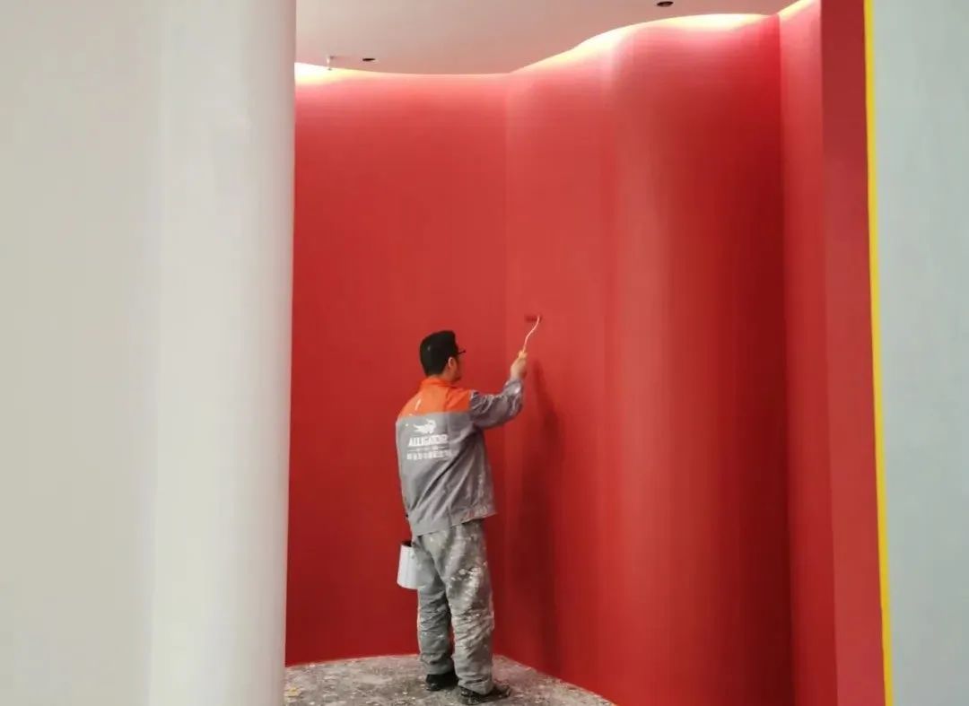 湖南衡阳华源建材市场,装修中的鳄鱼彩妆艺术涂料旗舰店