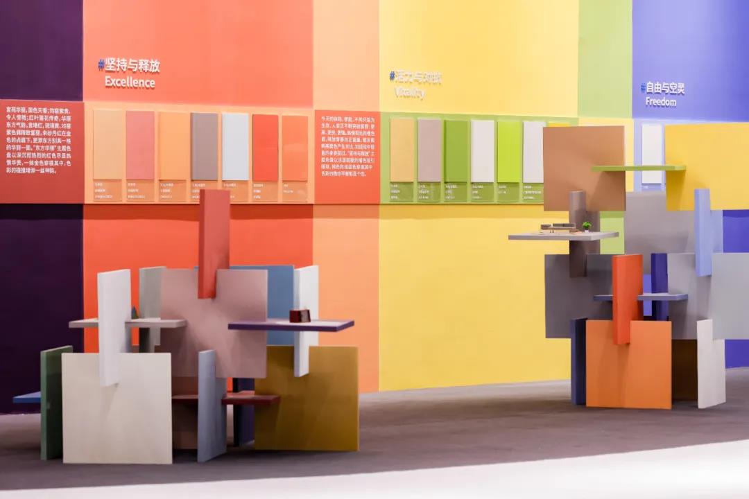 立邦在2021广州建博会上的展馆以#2022中国流行色彩趋势 为主题