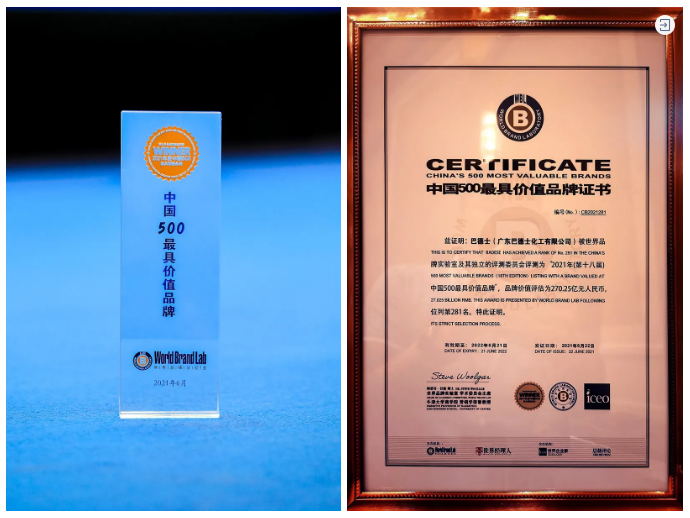 同时,在广大权威专家、合作伙伴以及消费者对巴德士的认可与支持下,巴德士连续7年登上《中国500最具价值品牌》排行榜,2021年,巴德士品牌价值高达270.25亿元,位列总榜单第281位。
