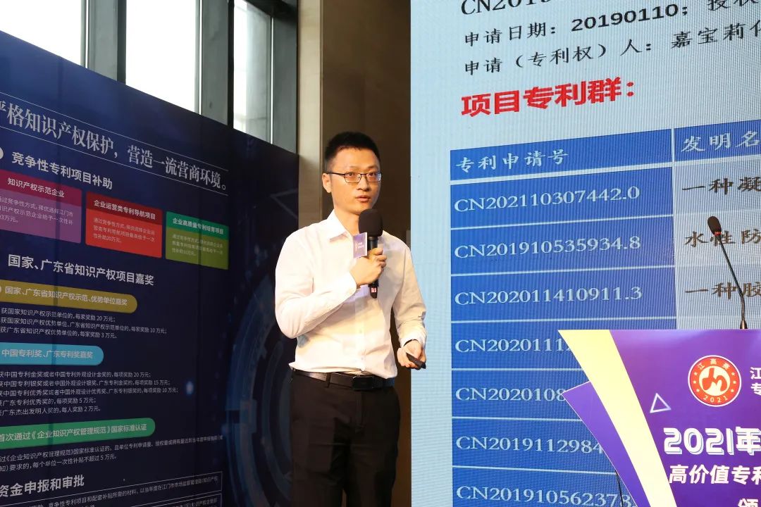“江高赛”是江门在“十四五”规划开局之年举办的全国首个地级市高价值专利培育布局大赛。江门市副市长蔡德威表示:“本次江高赛发现并筛选出一批技术领先、市场潜力巨大、专利价值优势显著的创新项目,为高质量创新点亮了'希望之灯'。”