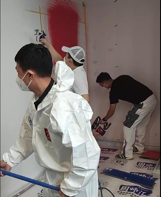 培训会后半部分的实践环节中, 来自全国各地参与培训会的芬琳漆经销商代表在固瑞克技术人员的指导下,实际体验了欧铁华内墙漆3度,欧铁华内墙漆5度,罗曼蒂克内墙漆以及水性木器漆的喷涂体验,通过涂刷效率、效果的对比,充分感受到了喷枪带来的高效与便利。