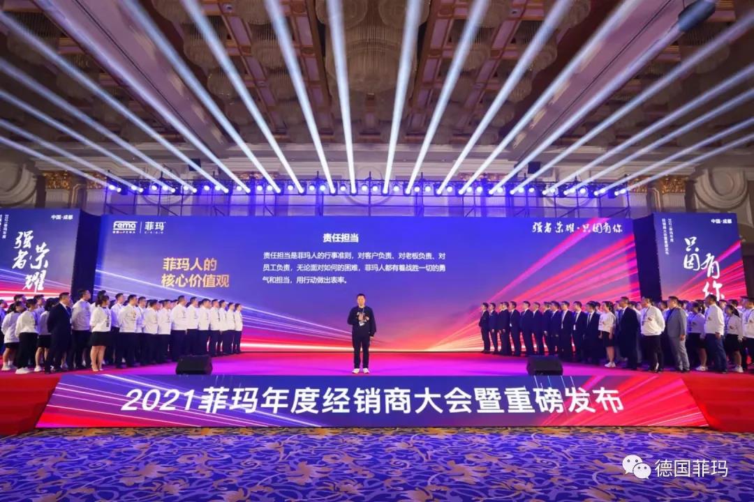 据悉,该会议原计划在9月举办,但因疫情一直未能平息,才延期至此,但德国菲玛家人们热情未减。华东、西北、西南、东北、华南、华中一区、华中二区、华北8大军区的全国优秀菲玛经销商战略合作伙伴1000余人着统一服装共襄盛宴。
