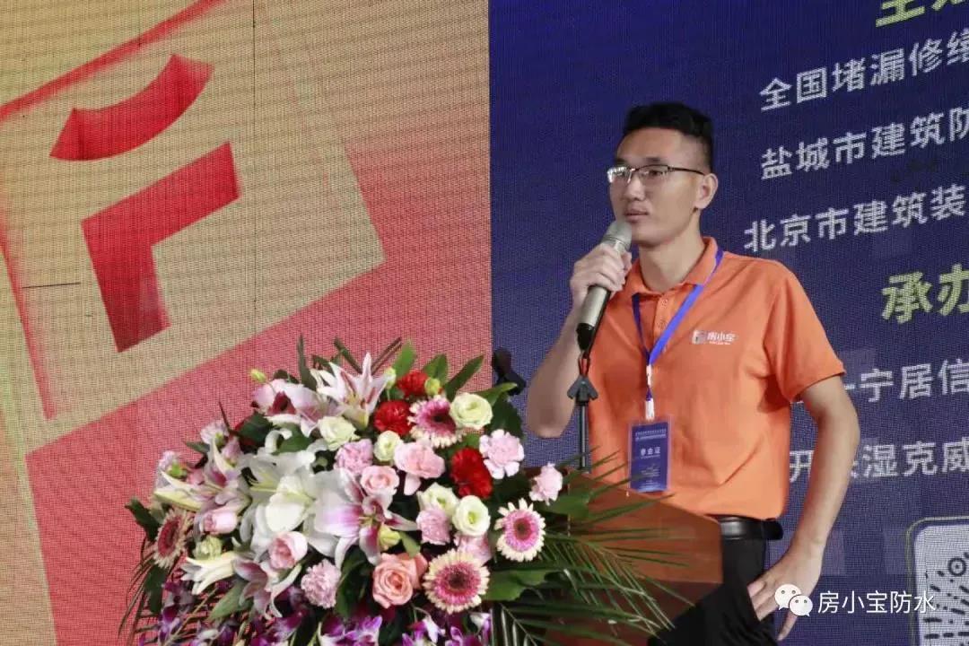 在技术交流环节,房小宝防水总经理吴俞荣上台发表演讲,分享了《房小宝防水爆款产品暨全产业链优势》报告。吴俞荣总经理以真实案例为依据,介绍了房小宝防水“3+2”爆款产品的含义及其特点,凭借着天冬聚脲新材料及全产业链优势,区别于传统的防水产品,重点向大家介绍了近年来“零渗漏”的工程应用案例,客观地展示了房小宝防水产品确实做到了“防水不漏”,做到了让客户满意。
