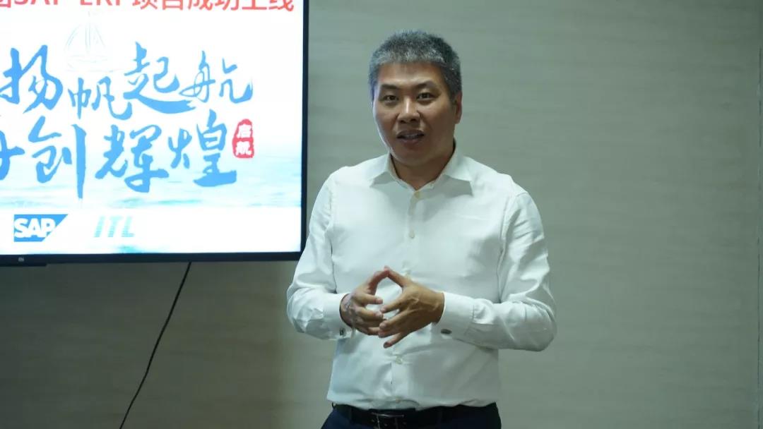 海通安恒董事长王传平先生在项目上线庆祝大会上发言。他首先感谢国庆假期没有休假仍然坚持在工作现场的项目团队们,也感概大家克服一切困难也要按计划上线的豪迈。其表示,上线成功不等于成功上线,所以需要大家在SAP ERP上线成功的基础之上,保持良好势头,再接再厉,确保系统平台安全、规范、高效、有序运行。海通安恒希望能做巴德士的长期合作伙伴,为百年巴德士,千亿巴德士的战略目标保驾护航。