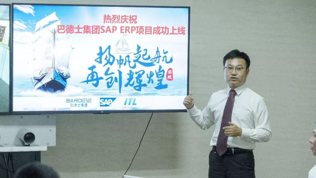 在SAP ERP项目上线庆祝大会上,巴德士集团董事长方学平先生表示;SAP ERP项目的成功上线是巴德士信息化发展历程中的一件大事,我仅代表公司对在系统建设过程中辛勤付出、默默耕耘的各位组长、关键用户、最终用户、还有我们海通顾问们表示衷心的感谢;上线只是开始,管理深化需要持续,因此要求大家尽快适应新系统中的各类新的管理模式和业务流程,改变现有的一些习惯,按照新的规范标准严格执行,也只有这样未来SAP系统才能发挥该有的价值,为公司的管理带来变革提升。