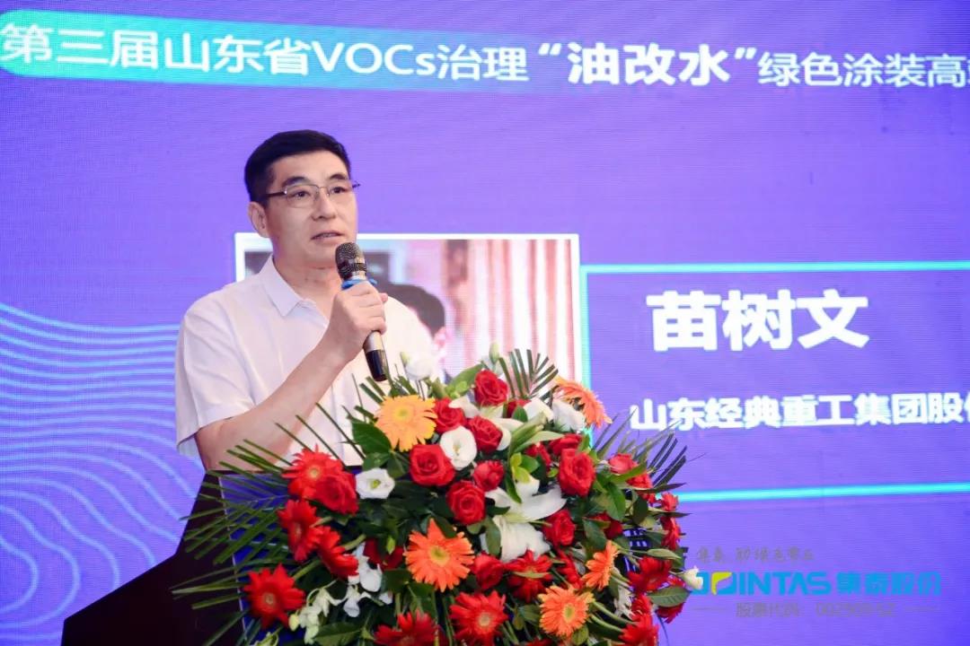 “10年来,集泰水性漆同比油性漆累计减排VOCs超过4万吨,为国家的环保事业做出了突出的贡献。山东省作为环保部门管控较严的省份,一直在积极推进水性漆的使用,山东众多钢结构企业也一直非常支持水性漆的推广。但是由于中小企业多,施工不规范,施工温度湿度不可控、成本压力大等问题影响使得在钢结构行业推广水性漆推进速度较为缓慢。希望通过政策宣讲、企业及专家共同行动、合力攻坚,更好更快推动山东省'油改水'落地,为打赢蓝天保卫战尽一份力,共同建设生态山东。”