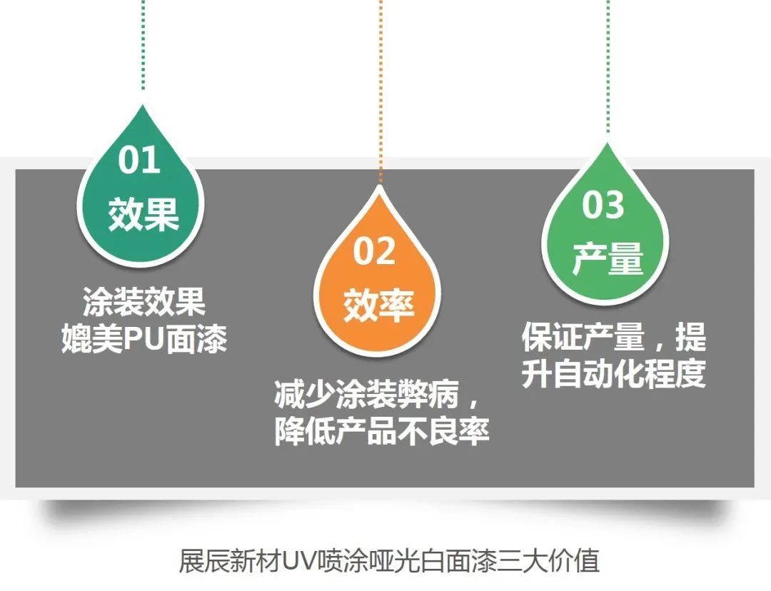 展辰UV喷涂哑光白面漆能够为家具企业带来三大价值: