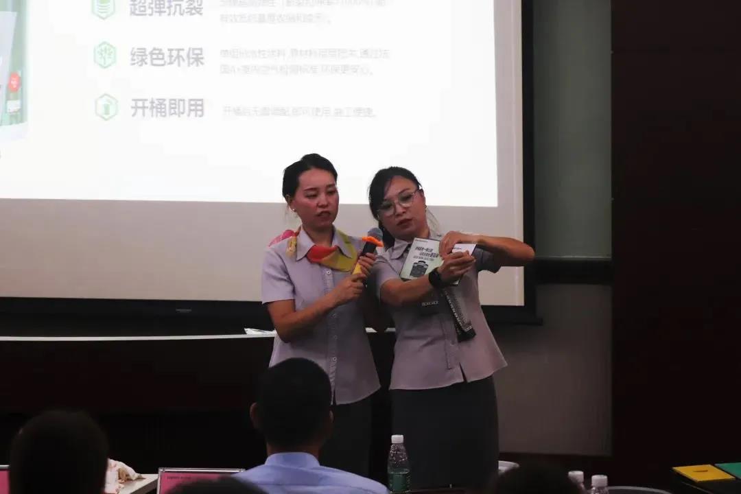 培训学校李敏老师详细地介绍了全新抗病毒、抗菌墙面漆系列、无机涂料产品系列、隐蔽工程系列等各领域产品的上市背景、物性特点、认证和检验报告的内容,并提供多种产品的销售方案及施工注意事项。