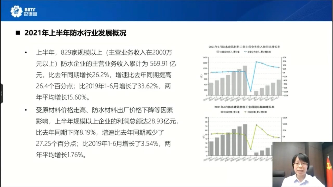 为了保证直播内容质量,巴德富特意邀请了中国建筑防水协会副会长陈岳与巴德富产品与解决方案体系TS高级工程师王涛涛,他们分别做了《2021年防水涂料行业现状和趋势》、《K11防水常见问题分析及解决方案分享》的主题演讲。