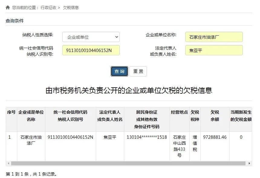 这已经是河北新闻网曝出的第二单石家庄市油漆厂欠薪情况了,首次则是石家庄油漆厂金鱼油漆分厂拖欠员工1-5月份薪资共1.873074万元,目前也已发放完毕。除此之外,石家庄油漆厂还涉嫌拖欠石家庄税务局增值税972.888146万元。