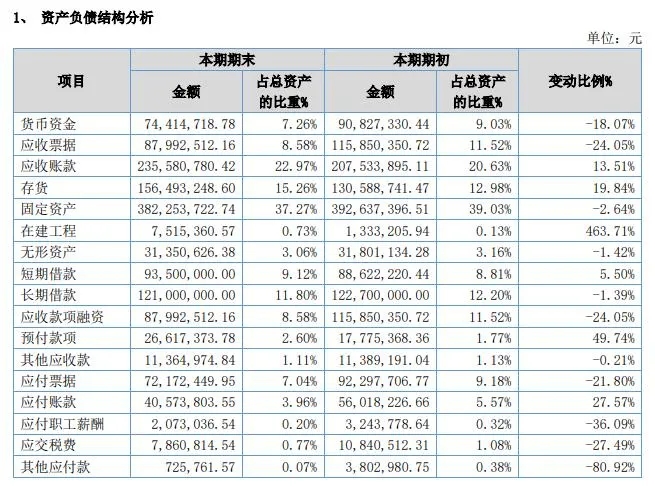 由上图可以看出,美佳新材部分资产负债项目发生重大变动,其原因包括: