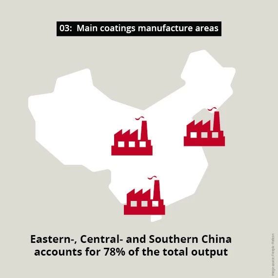 大多数中国涂料公司位于中国南部和东部以及中部。