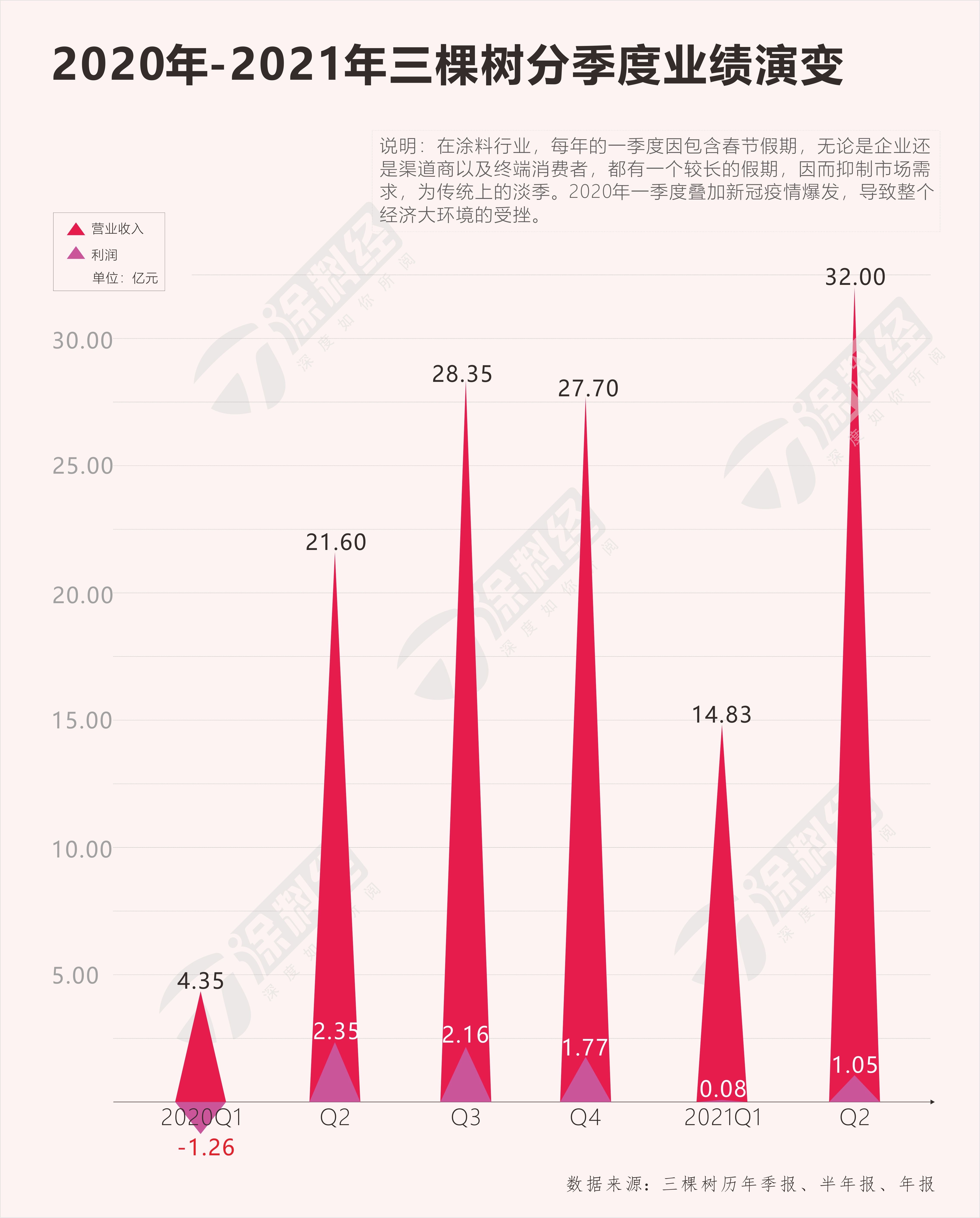 涂料企业中具有代表性的三棵树分季度业绩显示,2020年第三季度是全年的业绩高峰