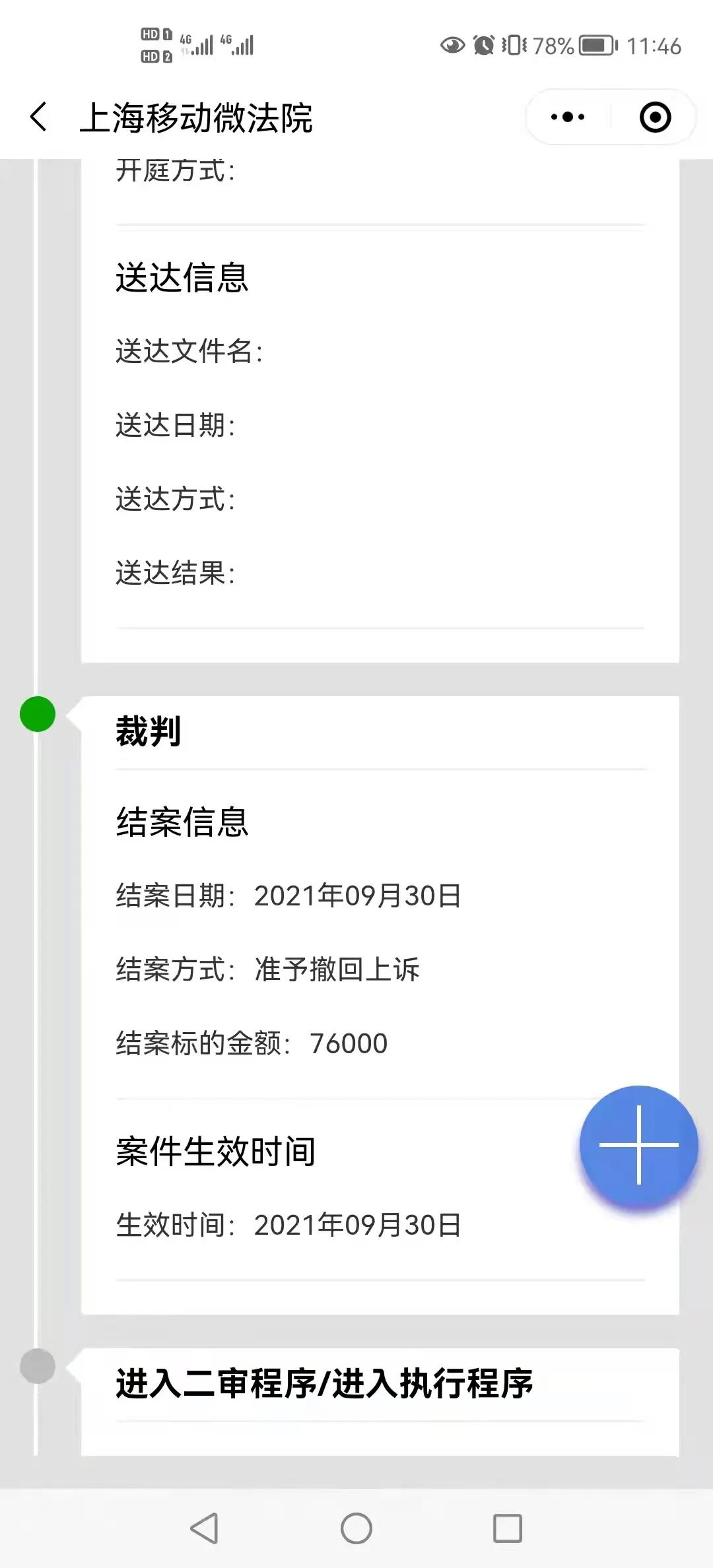 谢凌提供的上海移动微法院的进度截屏显示,案件于2021年9月30日以“准予撤回上诉”的形式结案