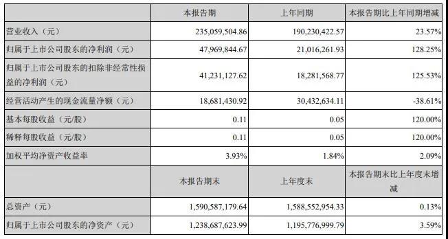 8月25日晚,渝三峡A(000565.SZ)发布2021年半年度报告,显示其实现营业收入2.35亿元,同比增长23.57%;实现归母净利润4796.98万元,同比大幅增长128.25%;扣非后净利润4123.11万元,增幅125.53%,每股收益0.11元。