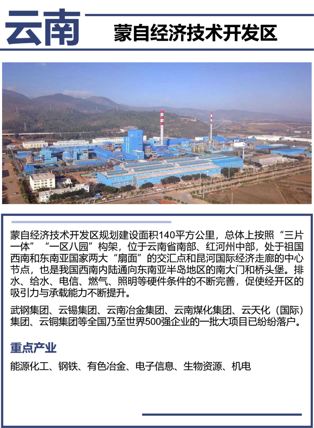 我们已与1000+园区达成战略合作,涵盖多家国家级经开区,汇集各园区招商资料囊括园区面积、基础设施、配套设施、土地价格、厂房租金、税收强度、主导产业、招商优惠政策等,可辅助企业优中选优地选址落地。
