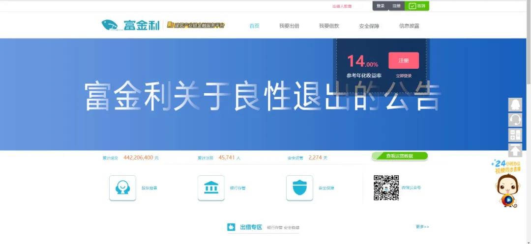 吊诡的是,在张海山入股后不久,2018年10月15日,由于深圳市金融办对网贷机构的整顿,富金利即发出《平台良性退出公告》。公告指出,富金利股东承诺负责所有债权催收,并兜底兑付用户债权。