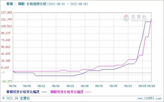受此次消息的影响,黄磷产量预期大幅减少,下游开始纷纷采购黄磷,随着黄磷现货紧张情况加剧,黄磷价格不断大幅度上涨。黄磷市场价格上涨,黄磷企业限电压负荷,产能降低,现货紧张加剧。上游磷矿石,焦炭价格上调,下游磷酸价格一路随涨,下游开始高价采购黄磷,高价黄磷接受度较高,整体来看市场信心良好,上下游支撑有力。预计,短期内黄磷市场难有下行预期。