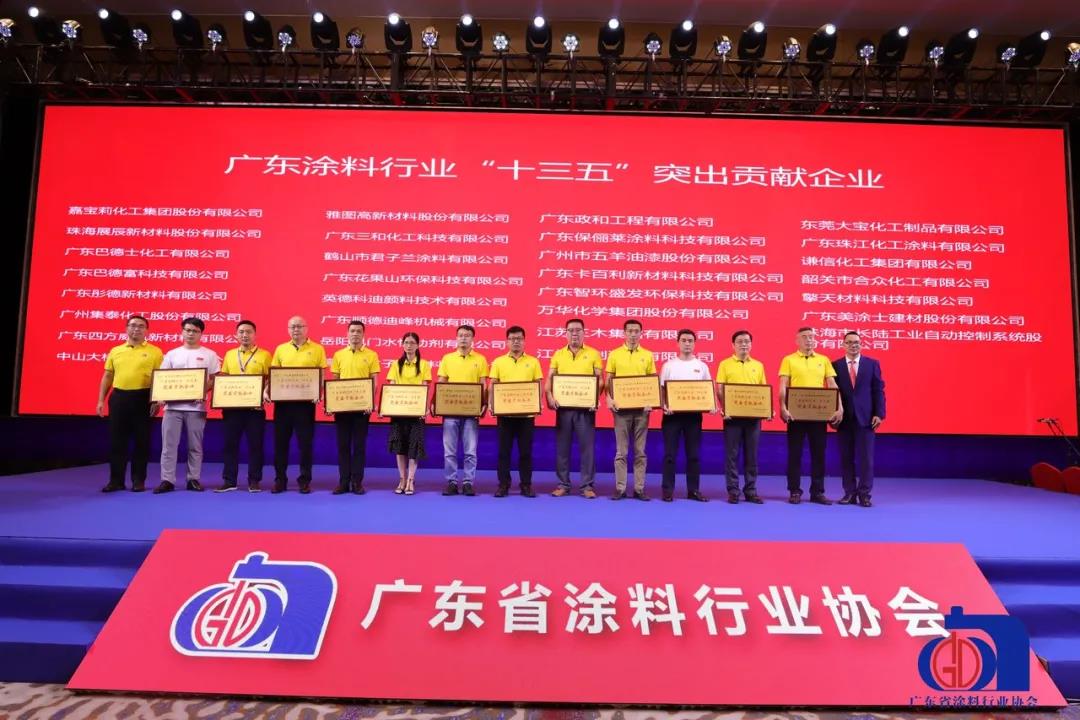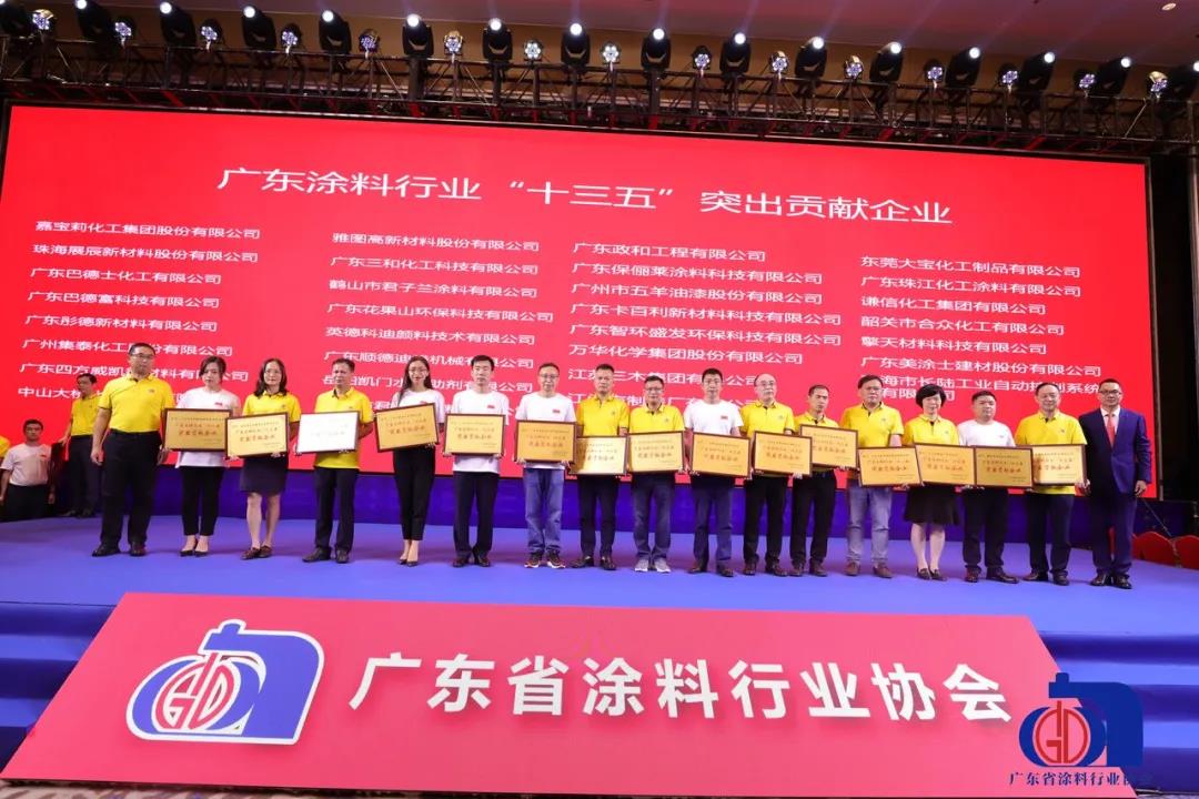 荣获广东涂料行业“十三五”突出贡献企业表彰的分别是(排名不分先后):