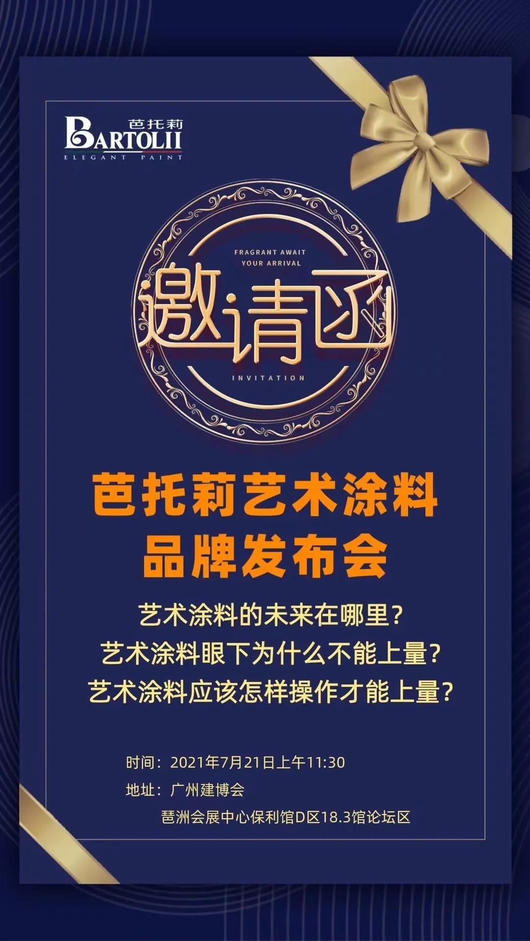 即将亮相的新品以及易涂得11年实战经验将会碰出怎样的火花?带给观众怎样的惊喜?7月21日上午11:30分,广州建博会琶洲会展中心保利馆D区18.3馆论坛区,“芭托莉艺术涂料品牌发布会”为您一一揭晓!