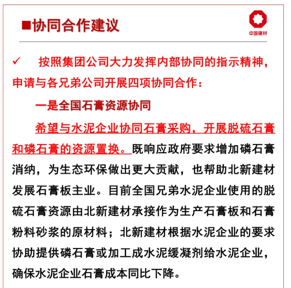 北新建材向兄弟公司提出四项协同合作建议部分截图