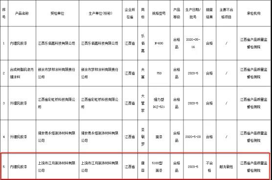 江西省抽查涂料产品不合格名单