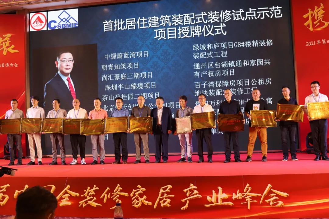 会议还介绍了首批居住建筑装配式装修试点示范项目,并为相关单位举行了授牌仪式。中国建材工业经济研究会装配式建筑和绿色发展分会会长熊奘为相关单位授牌。