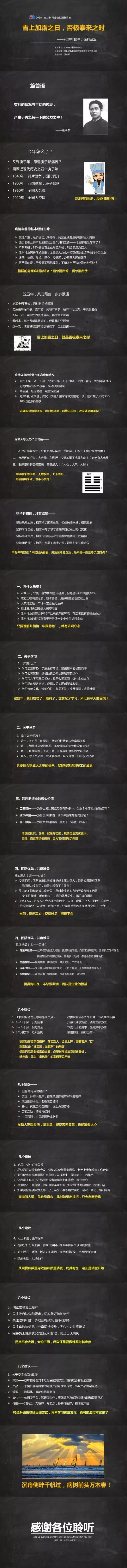 所以我们更应该在冬天过去之前,保存自己、充实自己、提升自己,秉承“四个坚持”的信念——坚持乐观心态,相信拐点即将出现,相信长期向好,相信政府;坚持学习自强,相信只有学习才能支撑自己跟上时代变化;坚持商业本质,相信传统制造业的首要价值就是工匠精神;坚持团队优先,相信干部员工通情达理,能够和你共度难关。