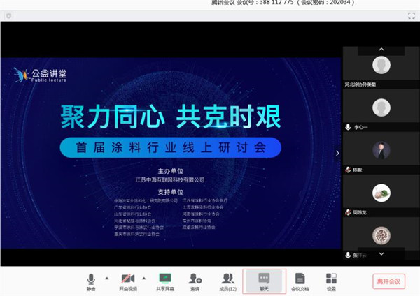 受新冠疫情的影响,不少人关心,进入3月份以来,各地涂料行业复工复产情况如何?3月6日,常州涂料研究院、江苏中海互联网科技有限公司(艾涂邦)、全国涂料行业商协会联席会特别举行了首届涂料行业线上研讨会,来自全国各省市涂料行业商协会部分负责人参加了在线公益直播,畅谈行业发展趋势。