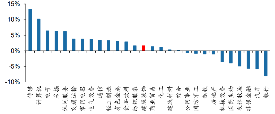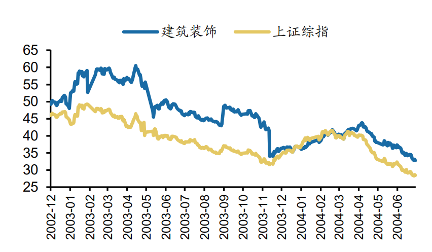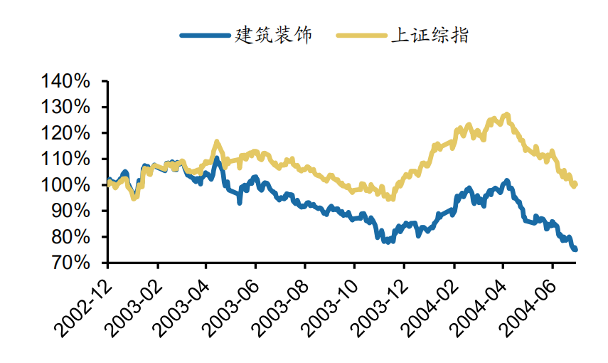 建筑装饰第一阶段(2002.12.1-2003.4.15)涨幅位于行业中后段