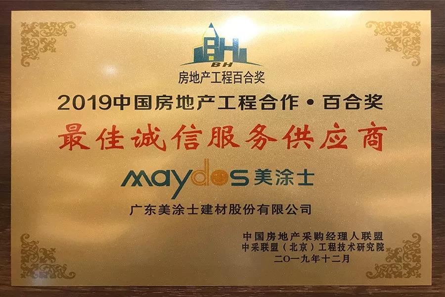 2、美涂士荣获工程合作百合奖“最佳诚信服务供应商”