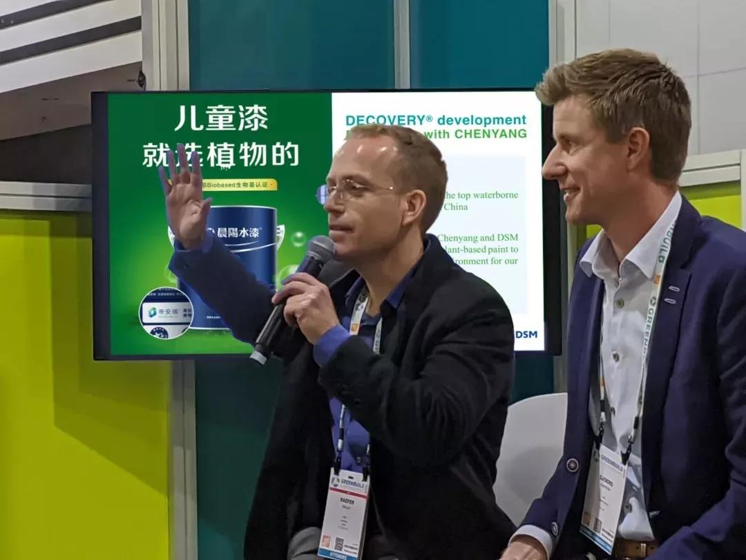 在2019美国绿色大会上,帝斯曼(DSM)宣布将与GIGA循绿、Toxnot及晨阳水漆合作,将其高性能植物基树脂帝安瑞®完全数字化,以此推动建筑行业化学成分透明化。此次合作开创了产品数据完全整合的全球先例,使得成分在全价值链中透明化,助力市场各方选择更为环保的解决方案。晨阳品牌运营中心总经理马林说道:“作为行业领导者,我们深知公开透明地展现帝斯曼生物基涂料及水性涂料在健康方面的特性将会产生积极影响,在中国市场尤其如此。”