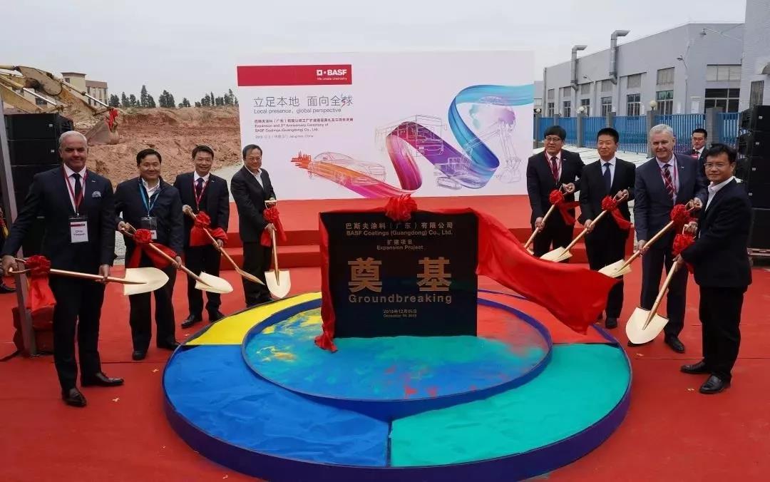 12月5日,巴斯夫涂料(广东)有限公司成立三周年纪念日,巴斯夫宣布将在位于广东江门的涂料生产基地新建一套汽车修补漆生产设施,计划于2022年上半年投产。江门市市长刘毅与巴斯夫全球高级副总裁、负责大中华区业务的郑大庆、巴斯夫东亚地区总部有限公司亚太区涂料系统高级副总裁赵铮宇,与政府领导及巴斯夫高层人员共同出席奠基典礼。广东省对于巴斯夫大中华区具有重大战略意义。此次巴斯夫加大对江门基地的投资,其生产能力将翻番。