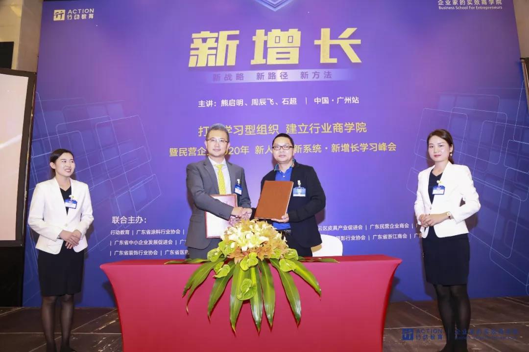 此外,在开班仪式上,吕水列代表广东省涂料行业协会与行动教育广州分校签署了《行业人才培育战略合作框架协议》,未来双方将围绕提升广东涂料行业人才培育,提升行业赢利能力,开拓新消费市场环境下的新增长点等领域展开行业服务合作。