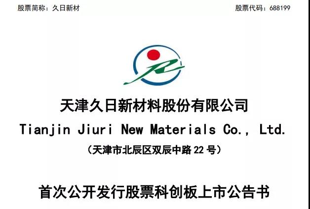 11月4日,天津久日新材料股份有限公司(股票代码为“688199”)在科创板成功上市,首次公开发行不超过2,780.68万股,且不低于发行后公司总股本的25%,发行价格为66.68元/股。