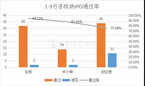 而2019年1-9月,主板通过率最高,创业板通过率最低。