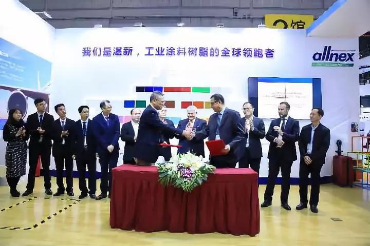 湛新树脂与多家合作伙伴的战略合作签约仪式在第二届中国国际进口博览会期间举行。与湛新签订五年战略合作及销售意向协议的企业包括中远关西涂料化工有限公司以及黄山华佳表面科技有限公司。