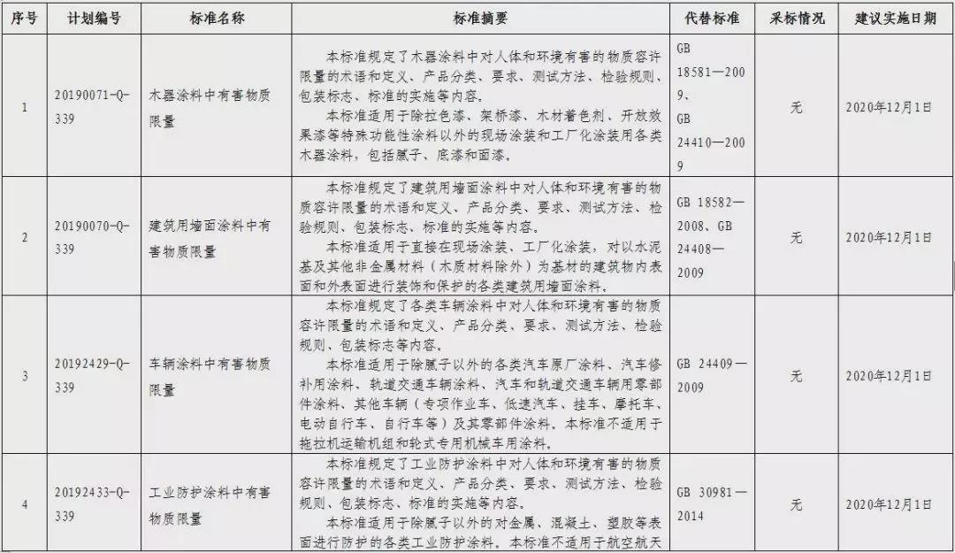 1、木器/建筑/车辆/工业防护4项涂料强制性国家标准公示