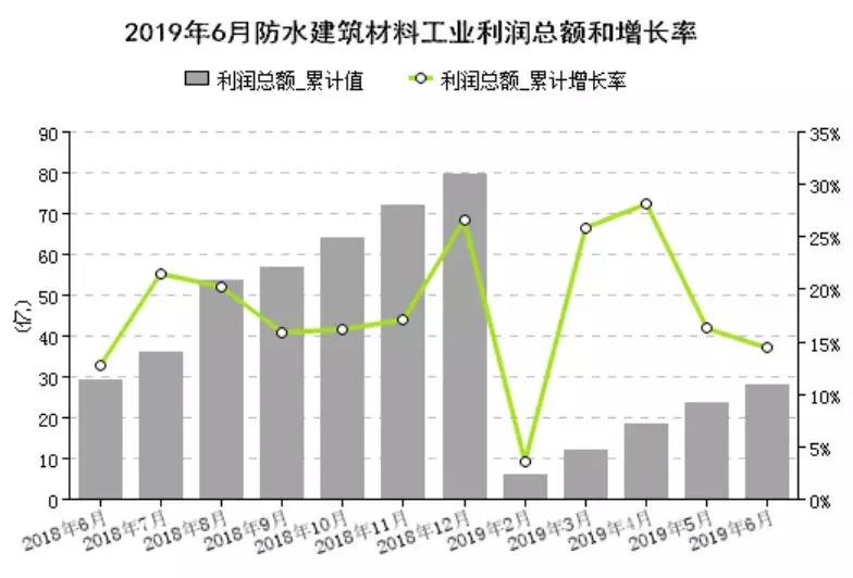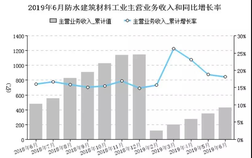 国家统计局数据显示,1-6月份,648家规模以上(主营业务收入在2000万元以上)防水企业的主营业务收入累计为426.50亿元,比去年同期增长18.1%,比去年同期增长2.1个百分点。规模以上企业的利润总额达27.94亿元,比去年同期增长14.4%,比去年同期增长1.7个百分点。