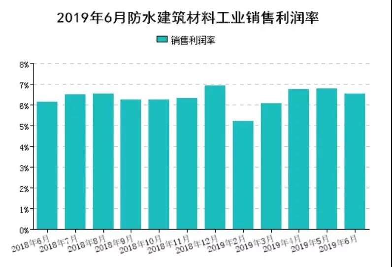 1-6月,规模以上防水建筑材料工业销售利润率6.55%,比上年同期减少0.21个百分点。2019年上半年,东方雨虹、科顺股份、凯伦股份三家A股上市公司均远远超于行业平均水平,1-6月凯伦股份毛利率最高为39.90%,东方雨虹次之,毛利率36.58% ,科顺股份33.37%。