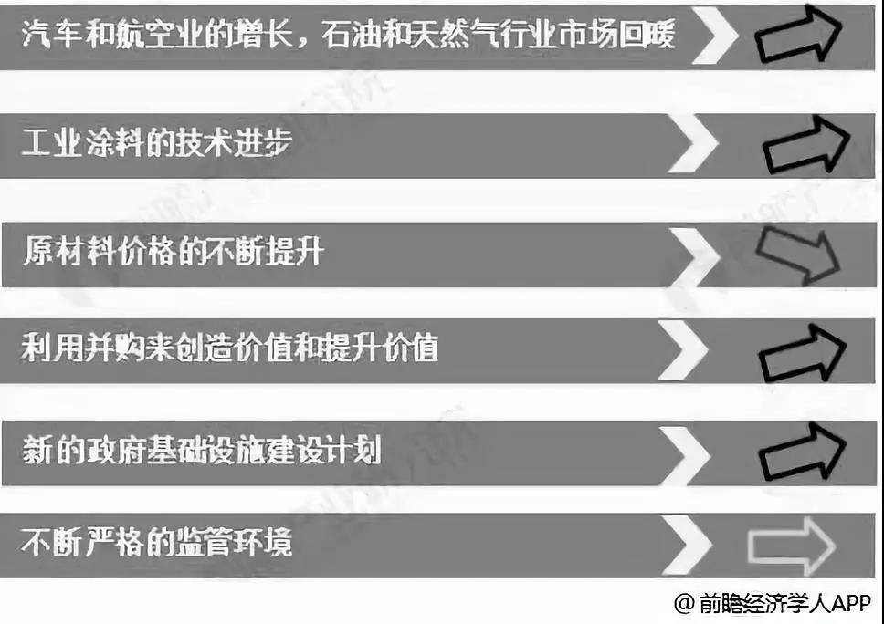 从行业发展有利因素来看,除了来自经济层面的低利率、参与者现金充裕和并购市场活跃等利好因素,还有一些特定因素也在推动着行业的正向发展。随着客户需求的不断更新、汽车和航空航天等终端市场的日益增长以及全球监管环境的不断变化,很多公司都在引入创新技术。