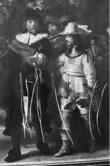 《夜巡》曾在20世纪为了移入荷兰皇宫而被裁剪、被一位神经失常的人用刀划过、还被硫酸泼过,据统计,这幅画总共被修补超过25次。