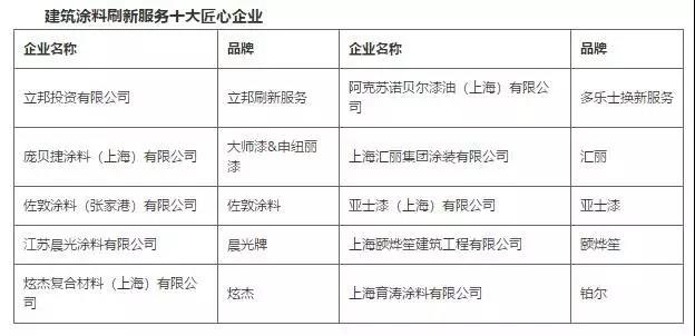大会最后举行了隆重的颁奖仪式,共有64家企业入围70项上海化建TOP10十大领军品牌和十大匠心企业。其中“建筑涂料十大领军品牌”、“建筑涂料刷新服务十大匠心企业”与涂料企业密切相关,获奖企业如下: