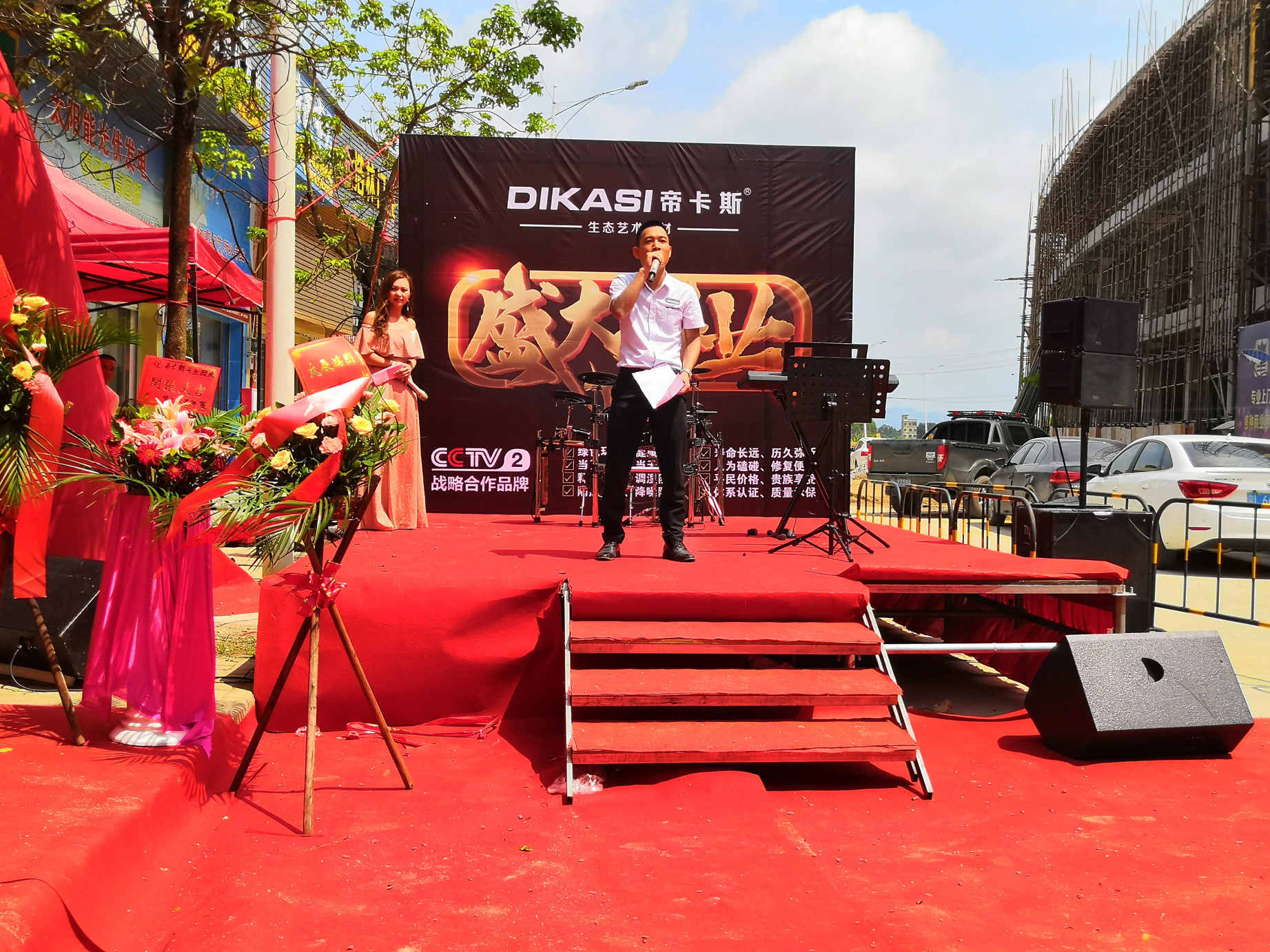 此外,还有龙门县当地三雄极光照明、浩林门业、箭牌卫浴、绘心装饰等多家旗舰店老板亲临现场出席致辞,为帝卡斯生态艺术壁材的开业盛典表示祝贺!