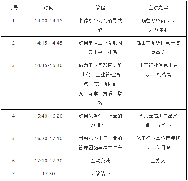 2018-12-12下午14:00-17:30在佛山顺德华桂园,举办“工业互联网补贴政策宣讲(顺德站)---暨探讨精细化工企业管理痛点与数字化转型”高峰论坛,诚邀广东省内外的涂料、油墨、树脂、胶粘剂等精细化工企业共同探讨。